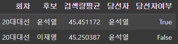 # 검색량 1위 여부, 당선 여부 추가