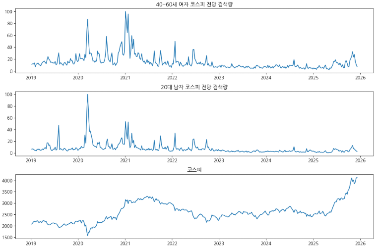 - 40~60세 여성 주가 관련 검색량 데이터