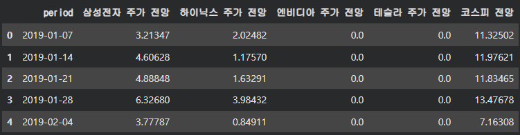 cols = ['코스피', '삼성전자', '하이닉스', '테슬라', '엔비디아']